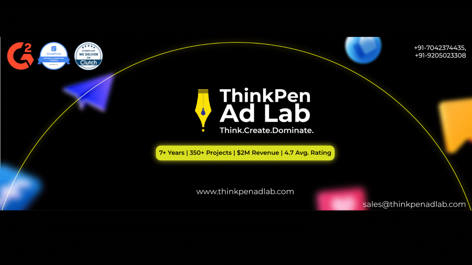 Established in 2017, ThinkPen Ad Lab is a Delhi-based 360° marketing agency offering end-to-end branding, tech, and media solutions. The agency specializes in creating campaigns that are not only visually striking but also ROI-focused, helping businesses scale and stay relevant in an ever-evolving market.